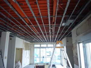解体が完了したら軽鉄天井工事にはいります。天井が一気にキレイになっていきます。