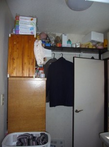 洗面台からタオル入れの収納棚も間取り上一直線に並べることができないため使える空間が少なくなっていました。